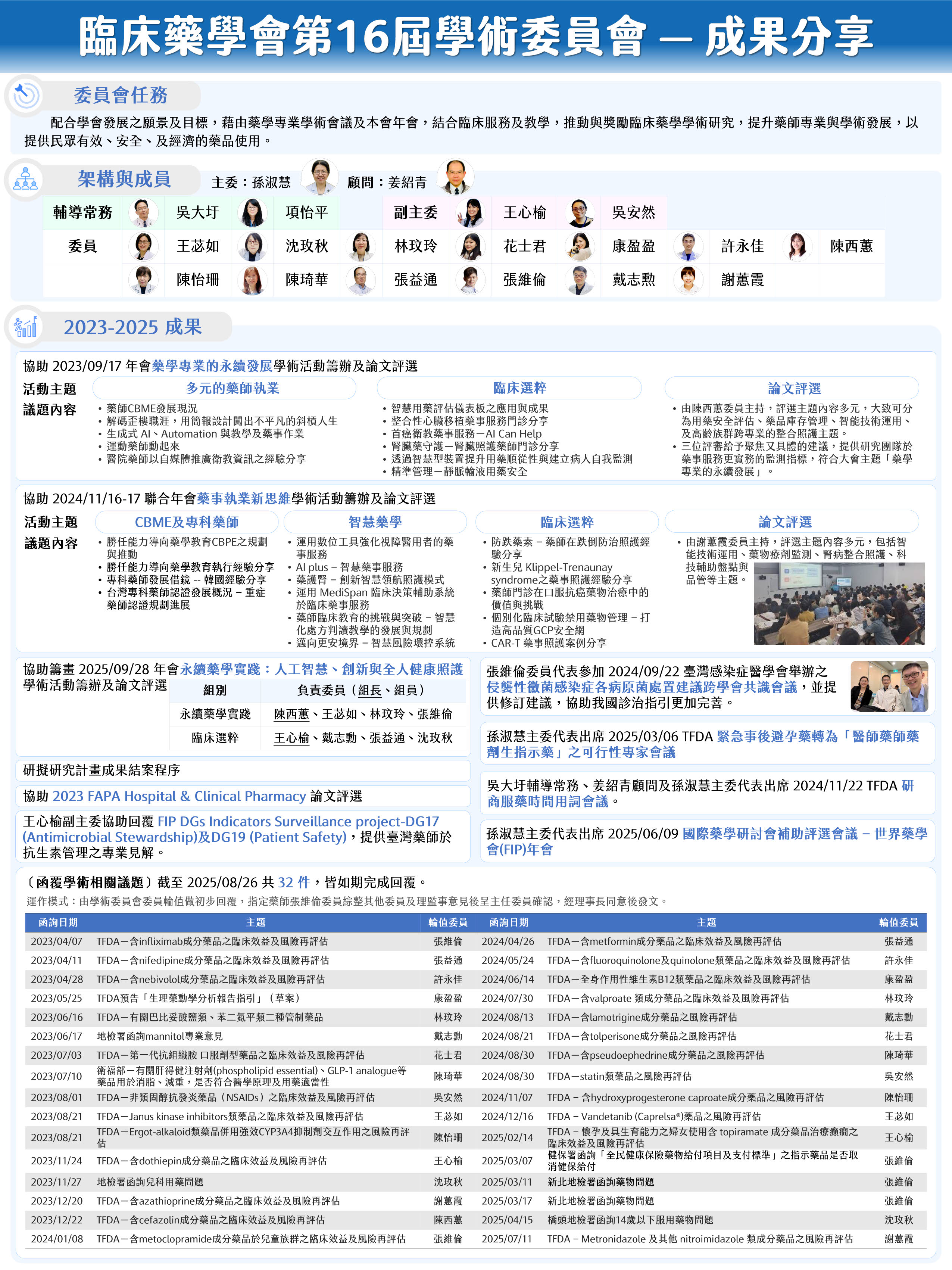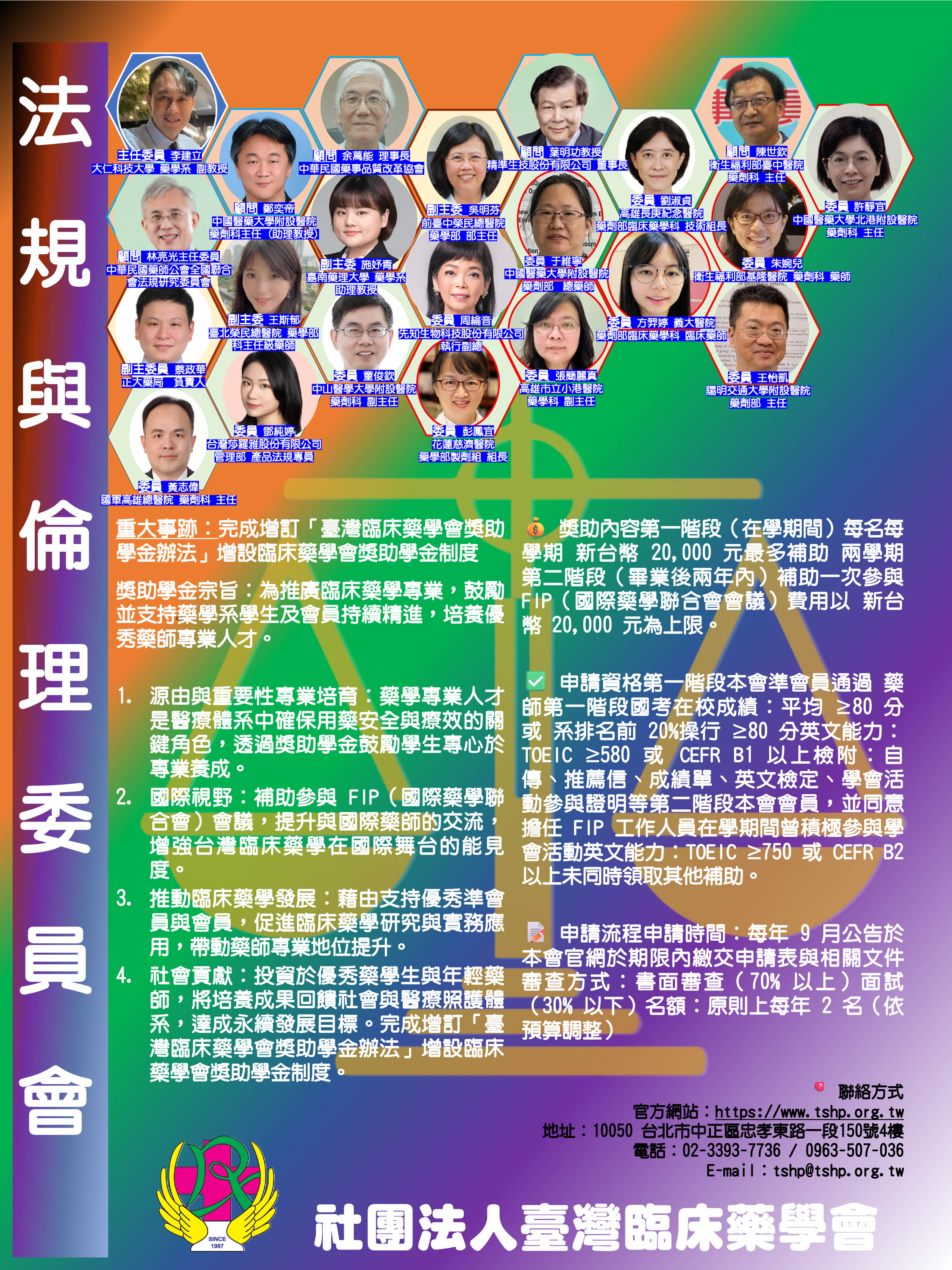 中藥委員會▼ 年輕藥師委員會▼ 法規與倫理委員會▼ 國際事務委員會▼ 專科藥師暨專門領域藥事照護能力認證委員會▼ 教育發展委員會▼ 編輯委員會▼ 學術委員會▼ 聯誼委員會▼ 繼續教育審核委員會▼