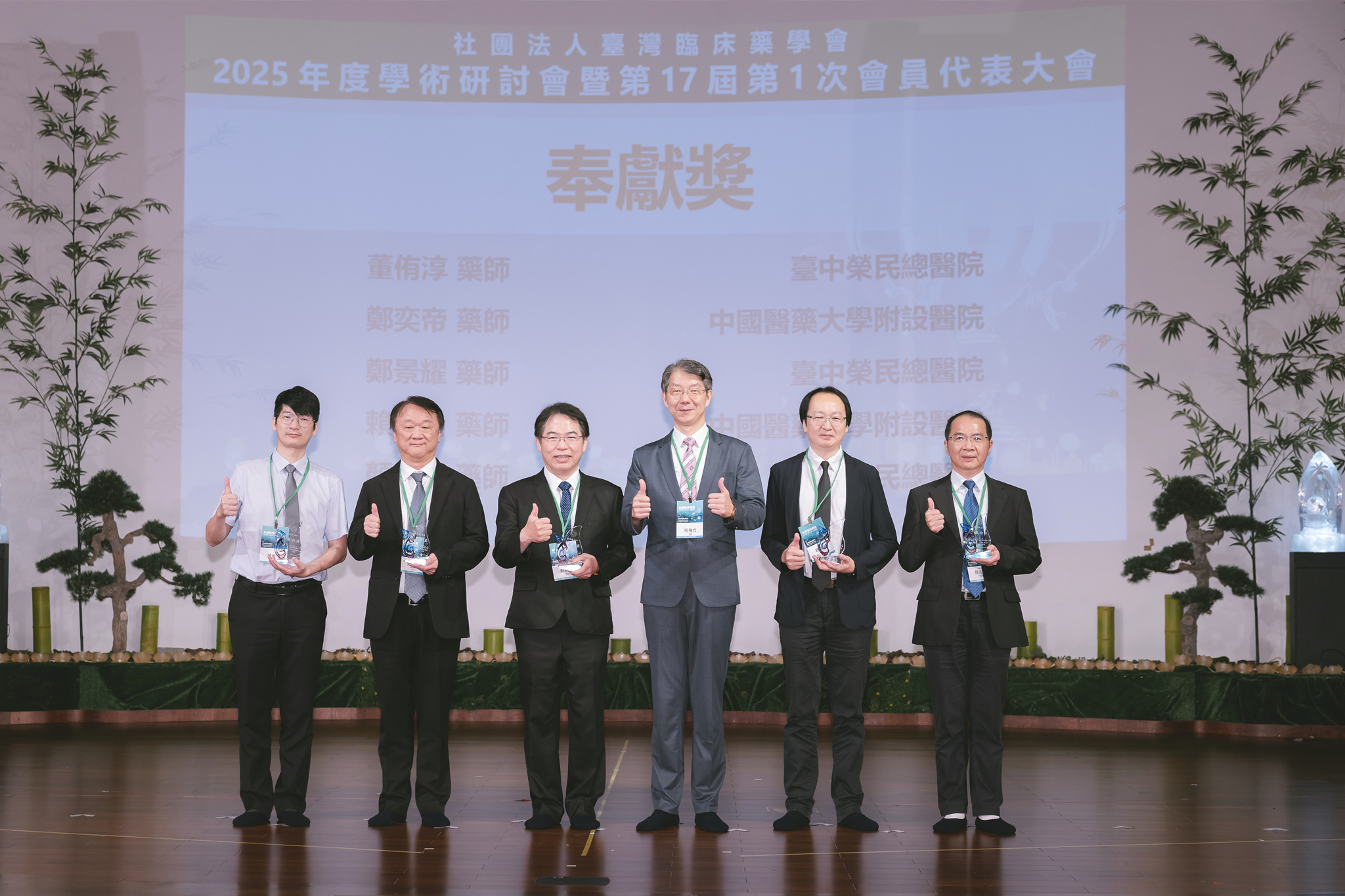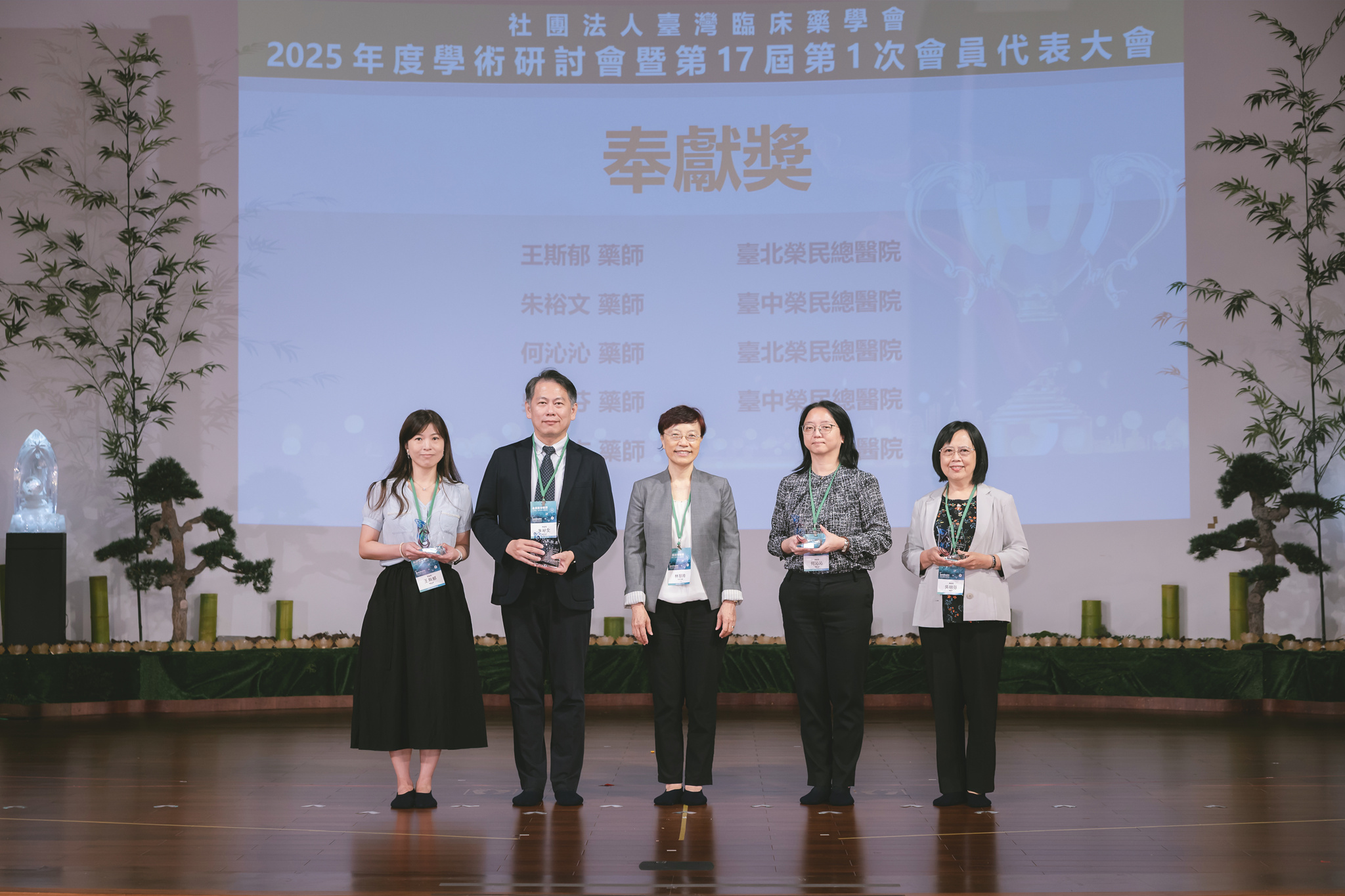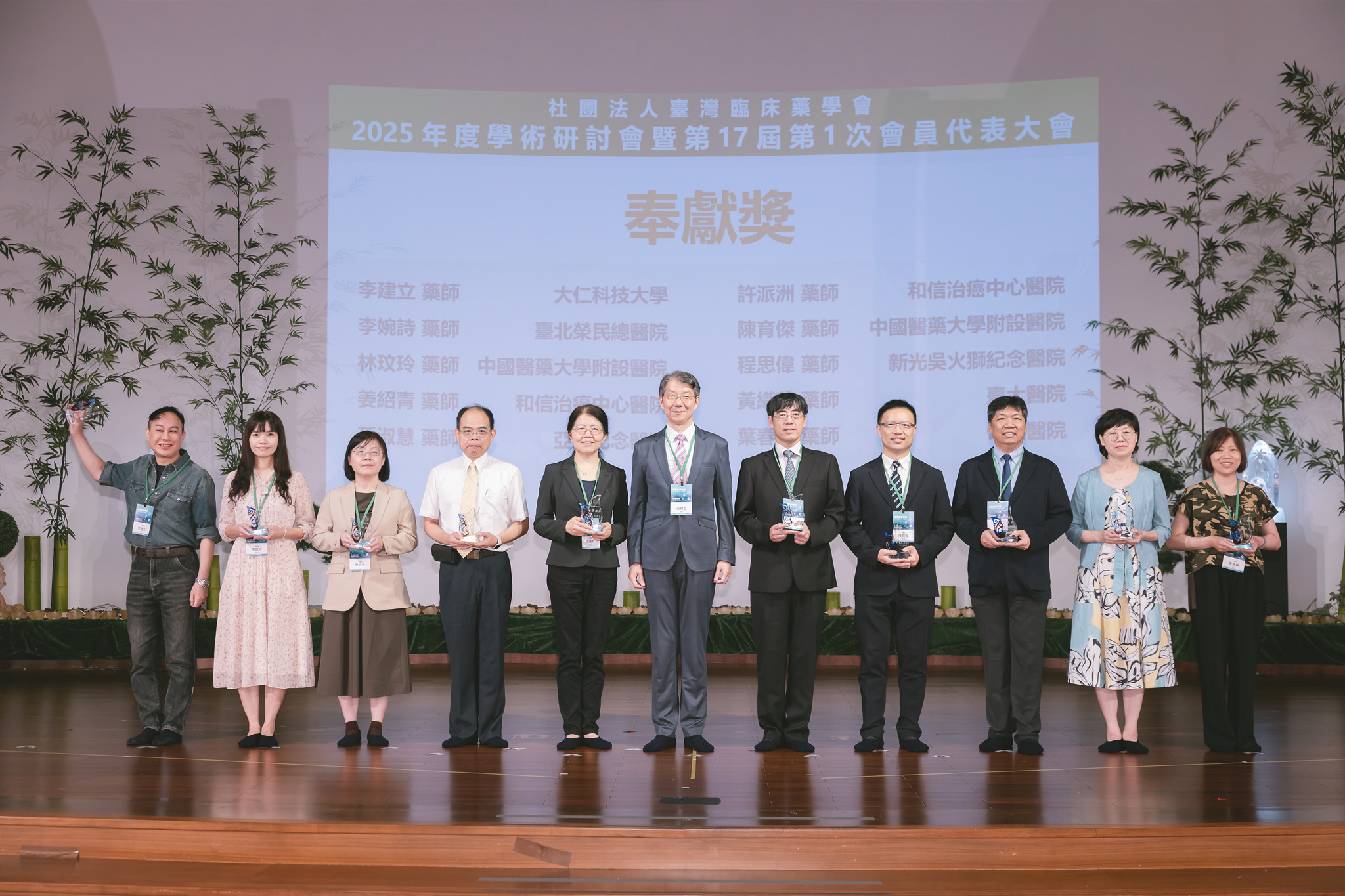 最後,頒發本年度優良服務獎、奉獻獎及傑出貢獻獎,感謝各界藥師們的付出,協助本會業務持續順利發展。此次以「永續藥學實踐:人工智慧、創新與全人健康照護」主題,期許藥師們持續攜手前進為全民健康努力,朝向永續經營發展。