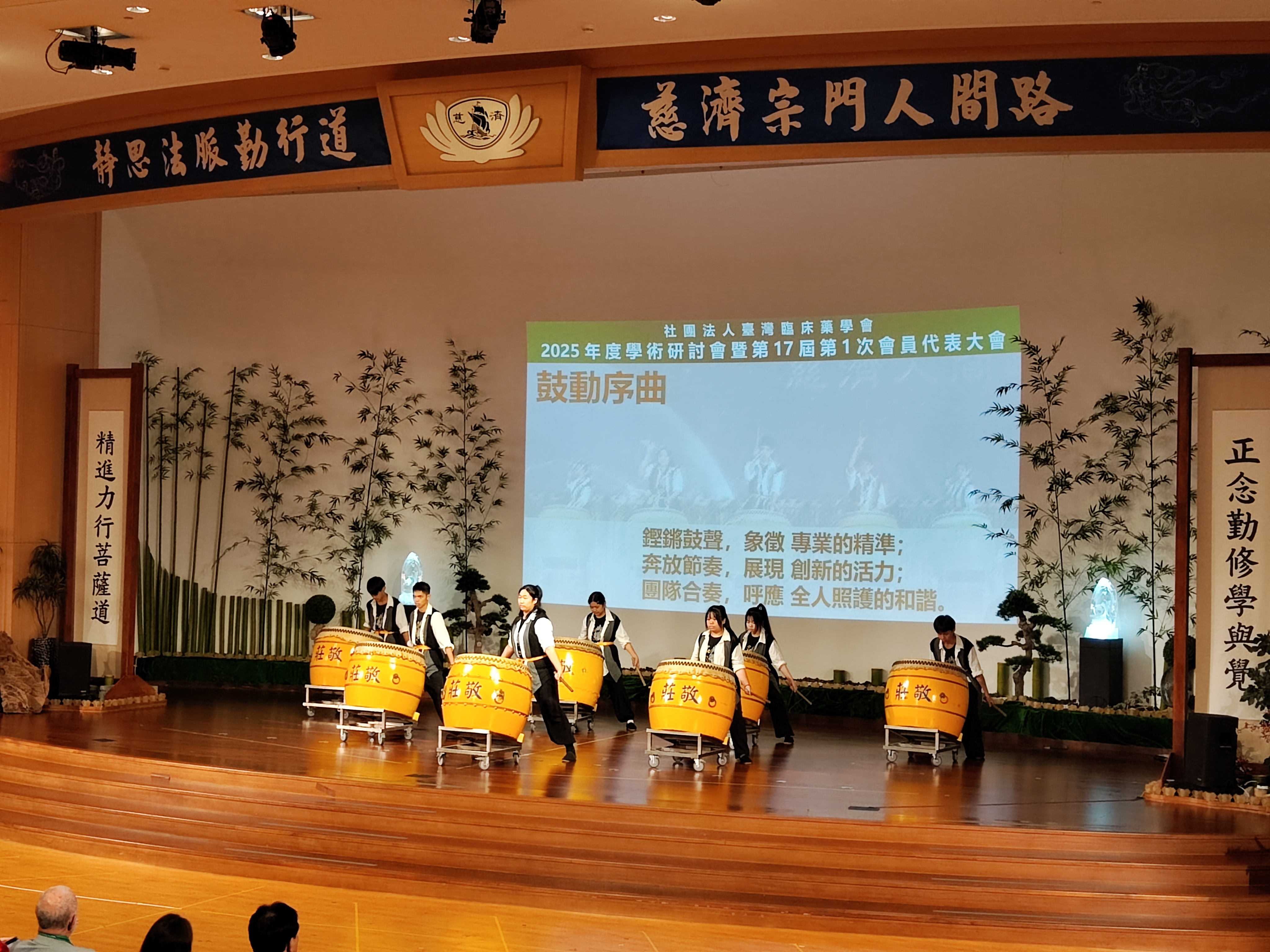本次大會由莊敬高職學生帶來大鼓表演揭開序幕,鏗鏘有力的鼓聲、奔放節奏展現雄壯氣勢及活力,震撼全場。此外,以一段全國具特色醫院藥劑部門介紹藥事作業智慧化、創新思維的影片,引領藥界觀摩學習,也展現近年來的成果及榮耀。