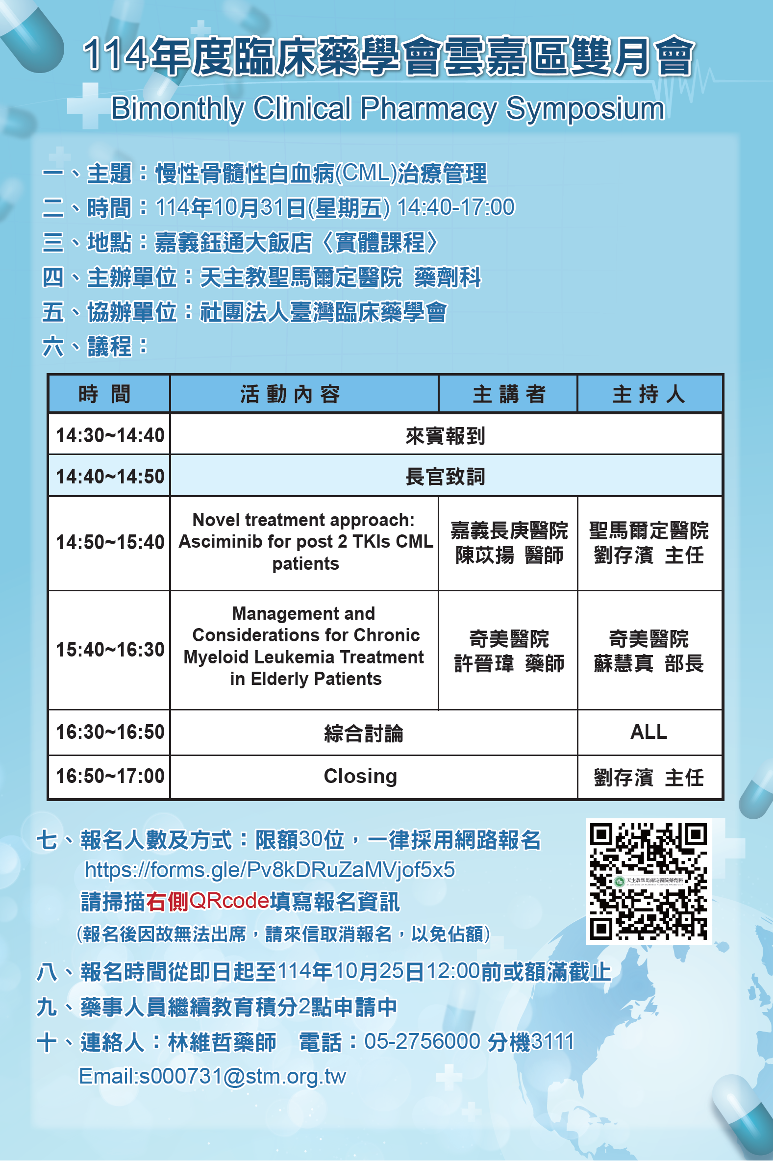 連絡人:林維哲藥師。連絡電話:05-2756000分機3111,Email: s000731@stm.org.tw