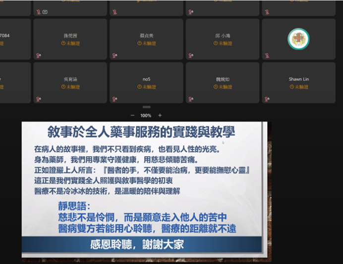 圖一、敘事於全人藥事服務的實踐與教學-中國醫藥大學附設醫院分享。