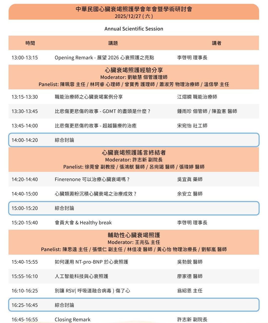 【轉知】中華民國心臟衰竭照護學會年會暨學術研討會-114.12.27